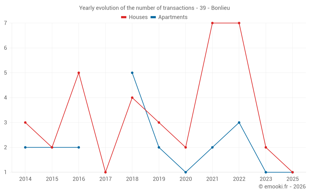 Real estate price map in the municipality of Bonlieu, choose a section to see transactions by parcel.