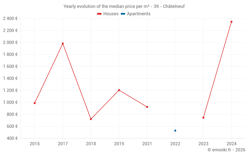Evolution of the median price per m² of houses