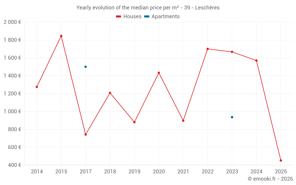 Real estate price map in the municipality of Leschères, choose a section to see transactions by parcel.