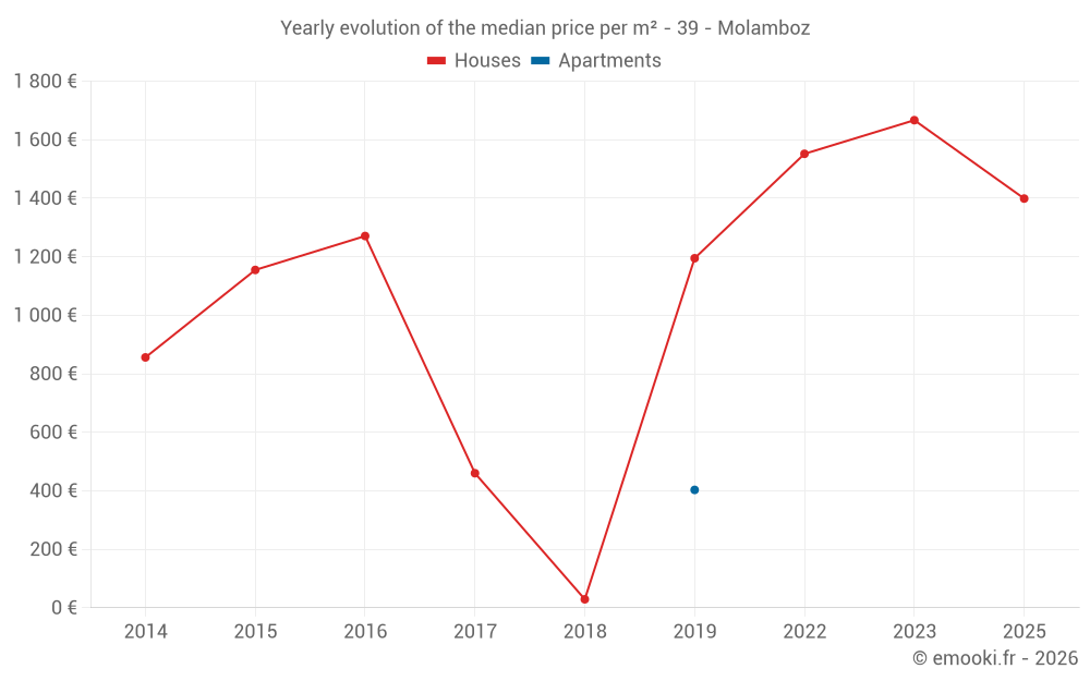 Real estate price map in the municipality of Molamboz, choose a section to see transactions by parcel.