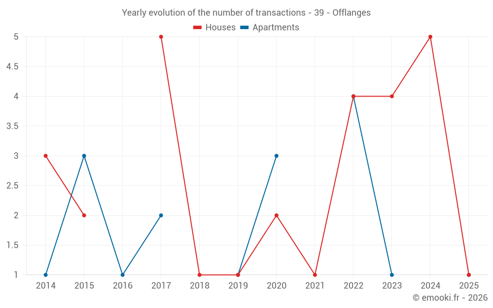 Real estate price map in the municipality of Offlanges, choose a section to see transactions by parcel.