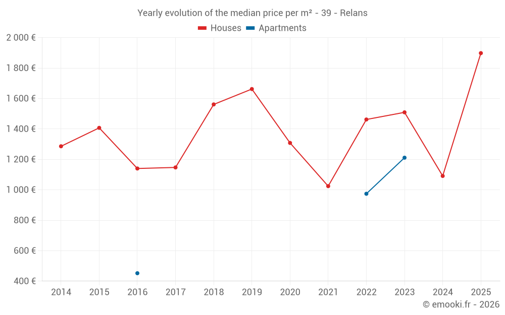Real estate price map in the municipality of Relans, choose a section to see transactions by parcel.