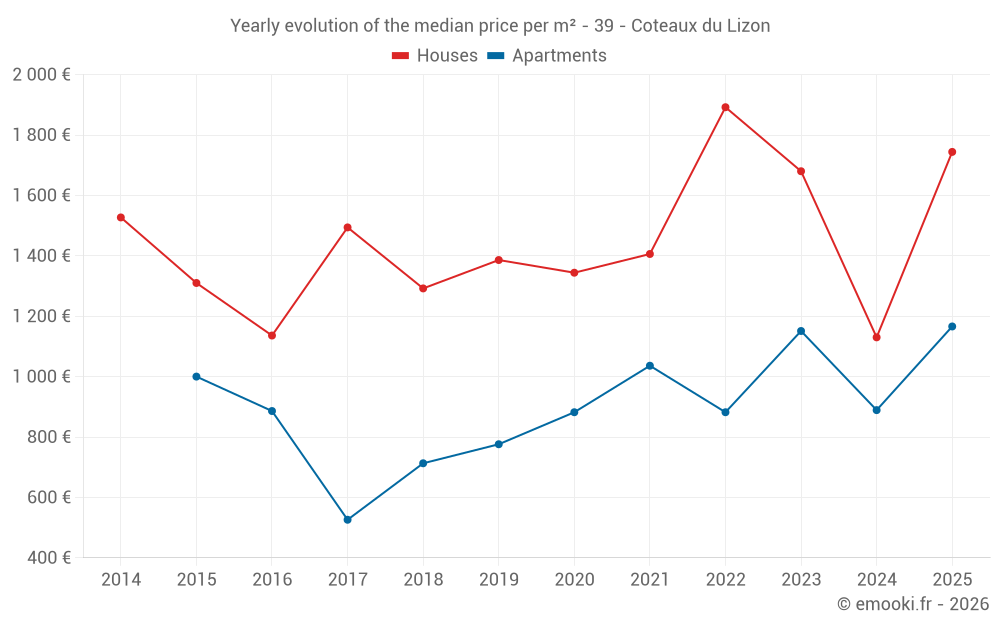 Evolution of the median price per m² of houses