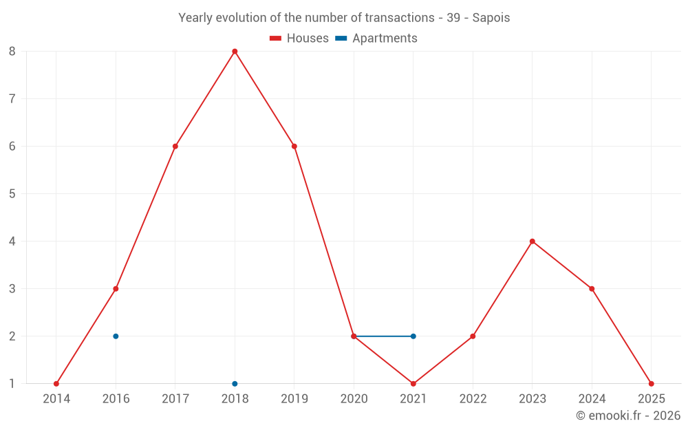 Real estate price map in the municipality of Sapois, choose a section to see transactions by parcel.