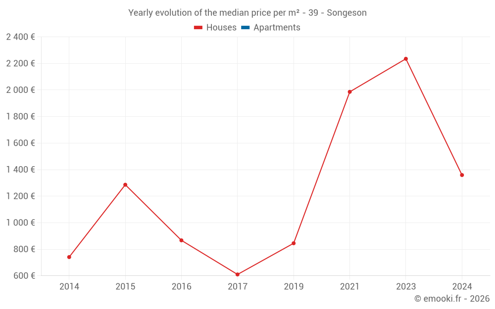 Evolution of the median price per m² of houses