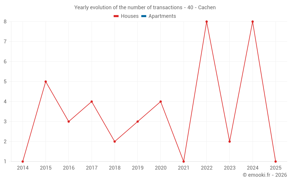 Real estate price map in the municipality of Cachen, choose a section to see transactions by parcel.