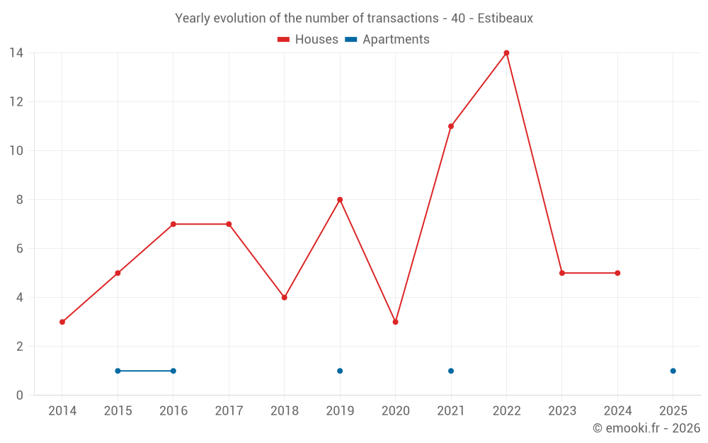 Real estate price map in the municipality of Estibeaux, choose a section to see transactions by parcel.