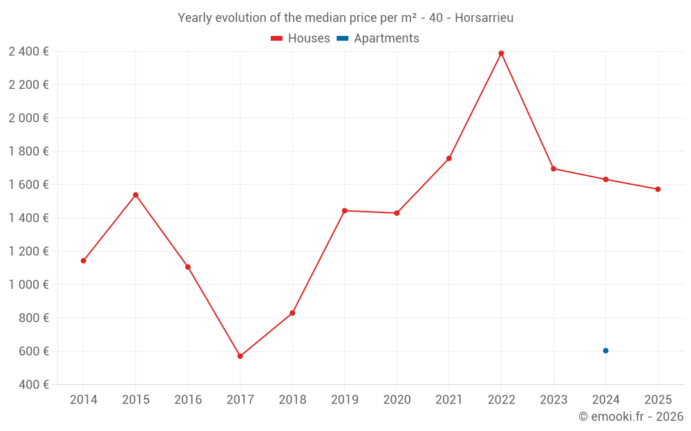 Real estate price map in the municipality of Horsarrieu, choose a section to see transactions by parcel.