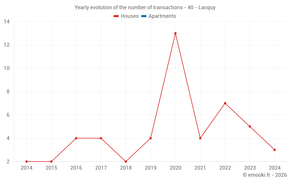 Real estate price map in the municipality of Lacquy, choose a section to see transactions by parcel.