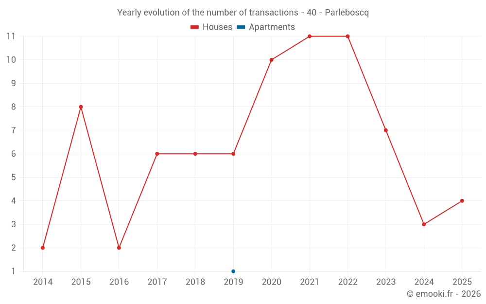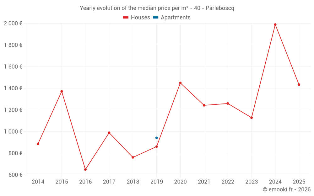 The price per m² of houses has decreased by 1.1% since 5 years, but it has increased by 88% in 7 years.