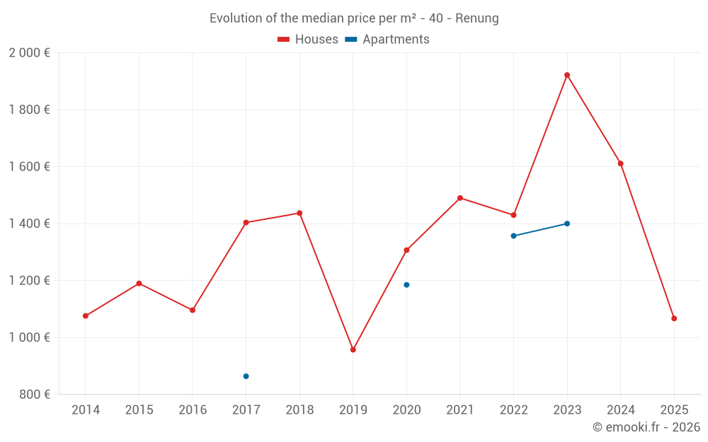 Real estate price map in the municipality of Renung, choose a section to see transactions by parcel.