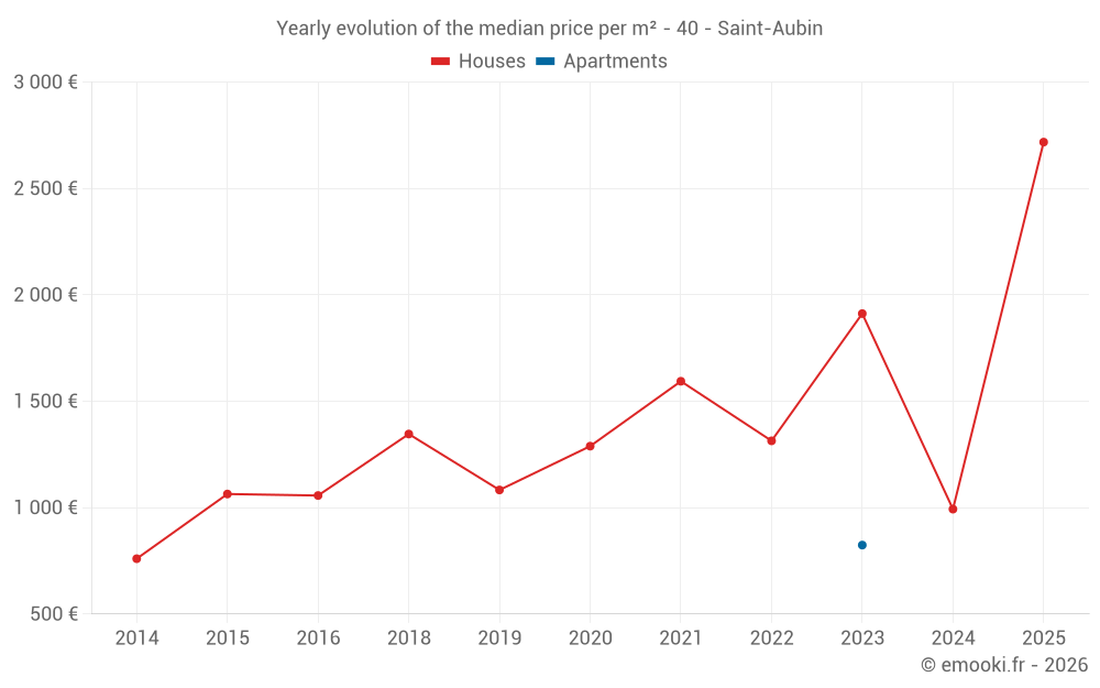 Evolution of the median price per m² of houses