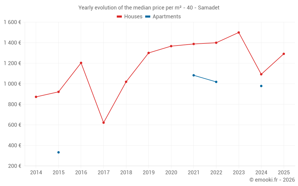 What is the price per m2 of houses in Samadet?