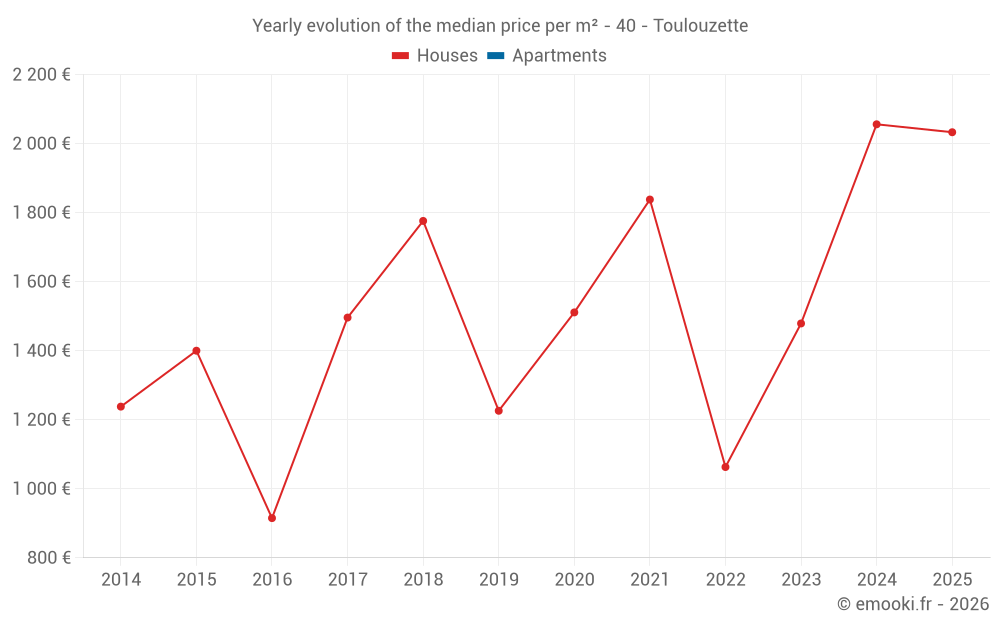 Evolution of the median price per m² of houses