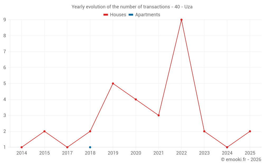 Real estate price map in the municipality of Uza, choose a section to see transactions by parcel.