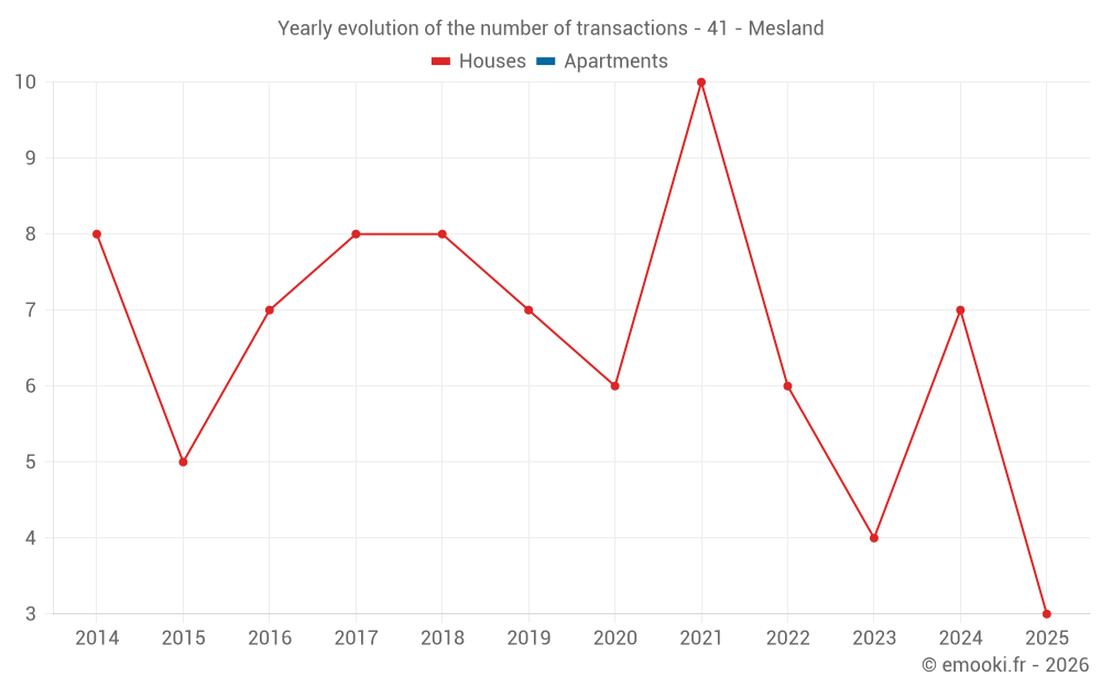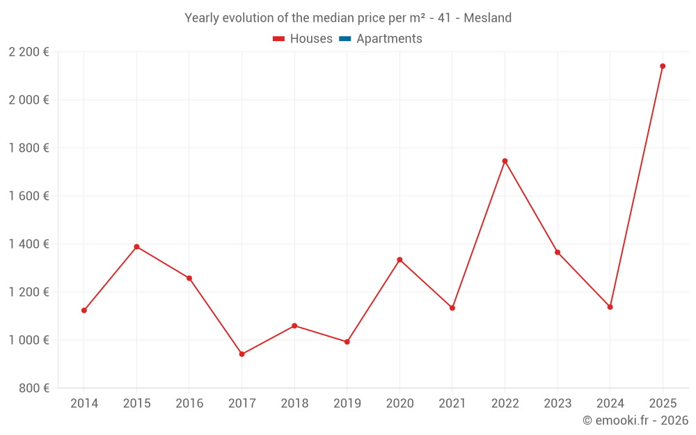 Real estate price map in the municipality of Mesland, choose a section to see transactions by parcel.
