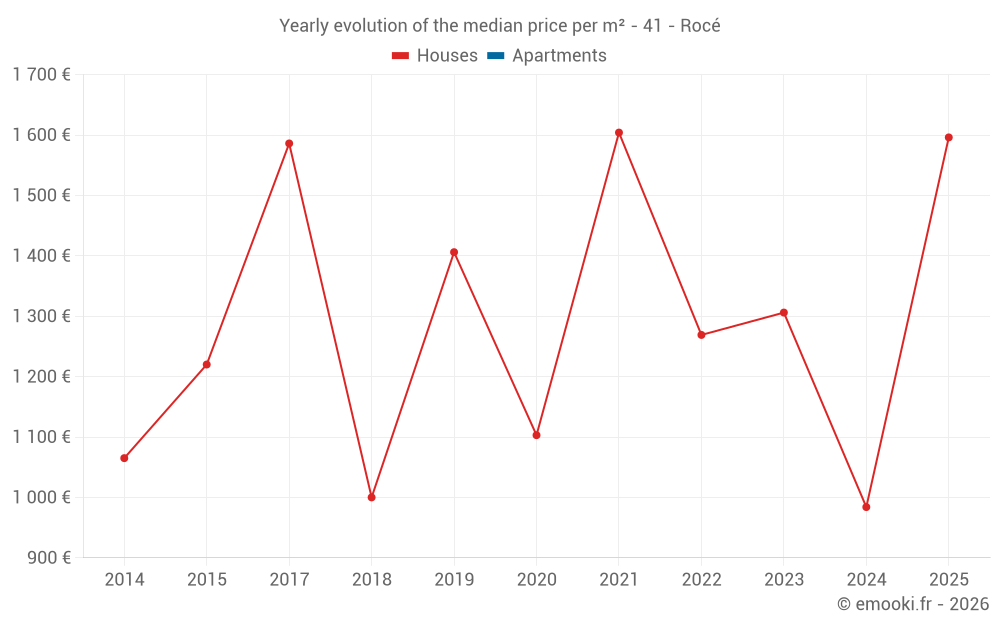 Real estate price map in the municipality of Rocé, choose a section to see transactions by parcel.