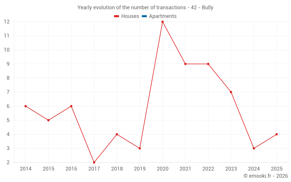 Real estate price map in the municipality of Bully, choose a section to see transactions by parcel.