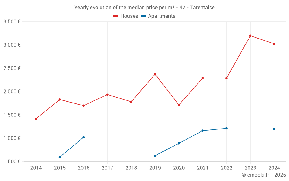Evolution of the median price per m² of houses