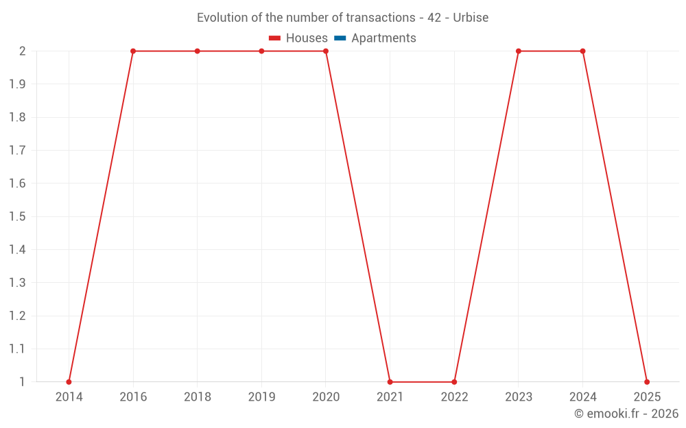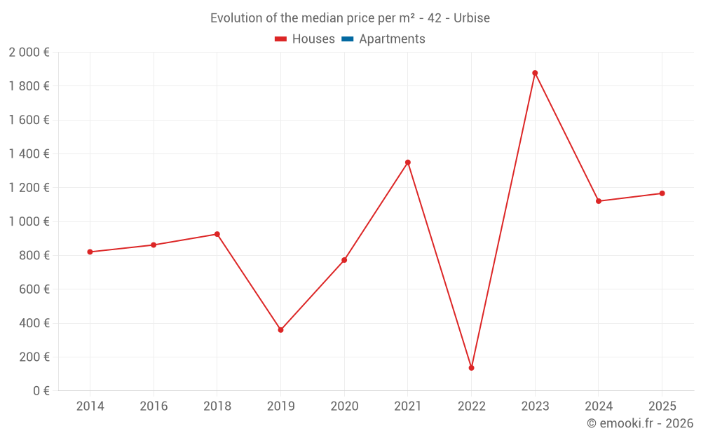 Real estate price map in the municipality of Urbise, choose a section to see transactions by parcel.