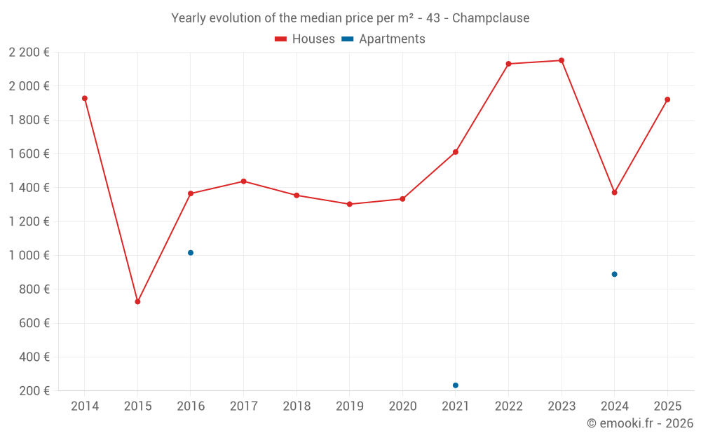 The price per m² of houses has decreased by 11% since 2 years, but it has increased by 47% in 6 years.