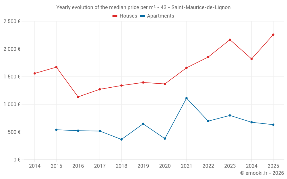 What is the price per m2 of houses in Saint-Maurice-de-Lignon?