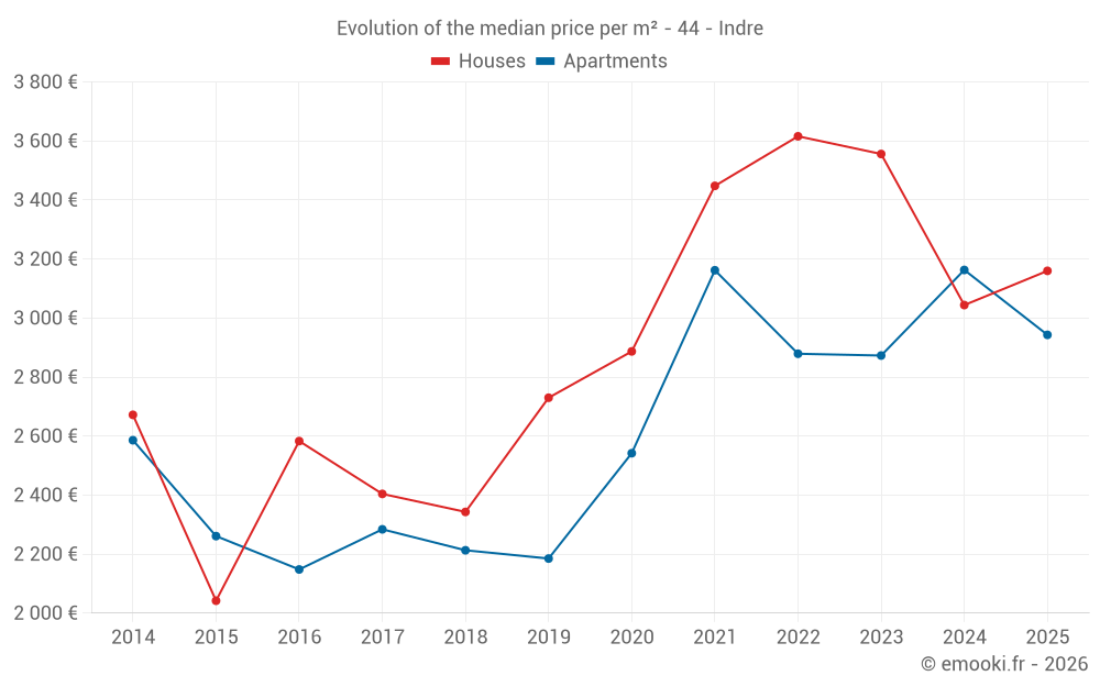 Median price on the 43 transactions of the last 12 months.