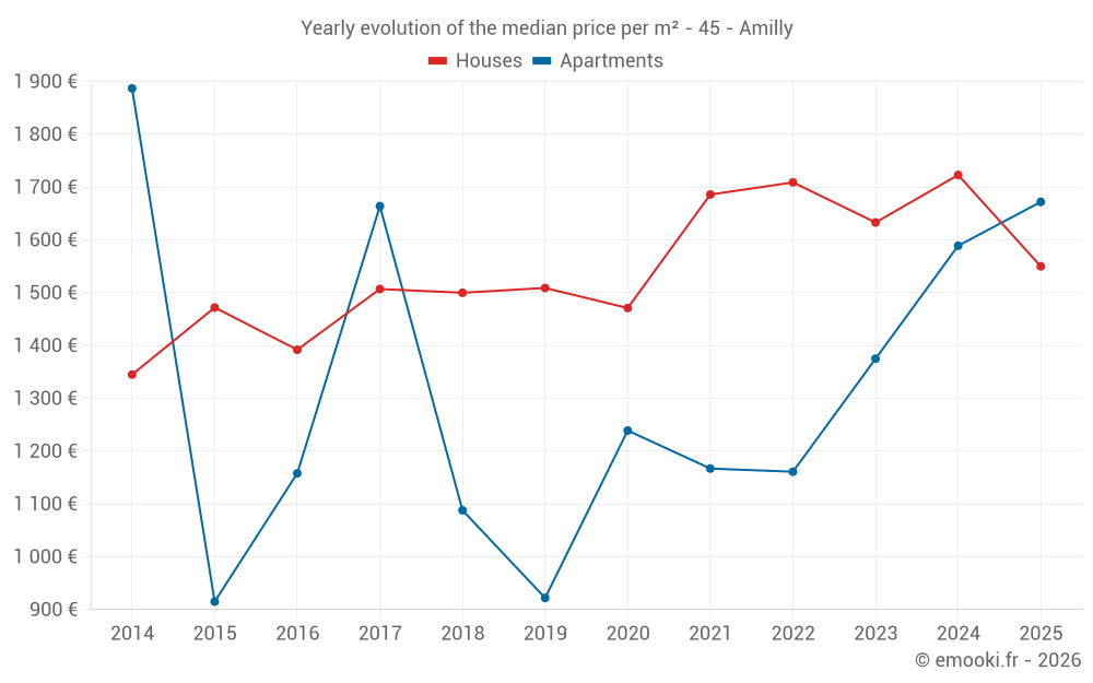 What is the price per m2 of houses in Amilly?