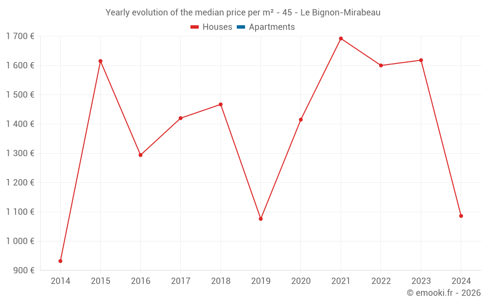 Evolution of the median price per m² of houses