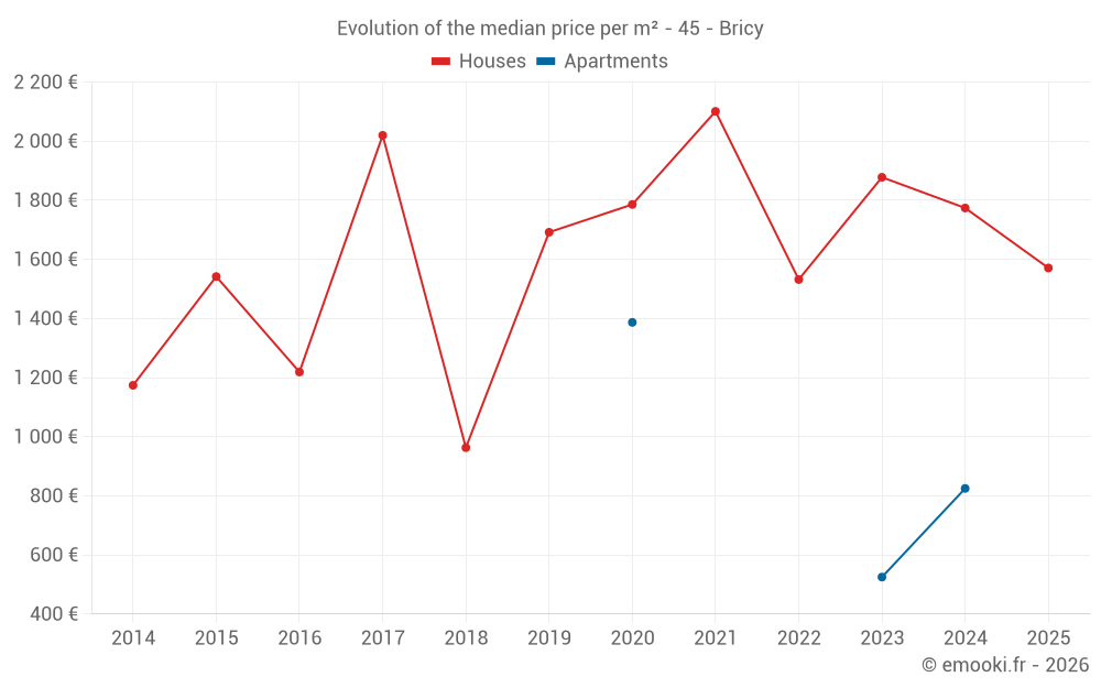 Real estate price map in the municipality of Bricy, choose a section to see transactions by parcel.