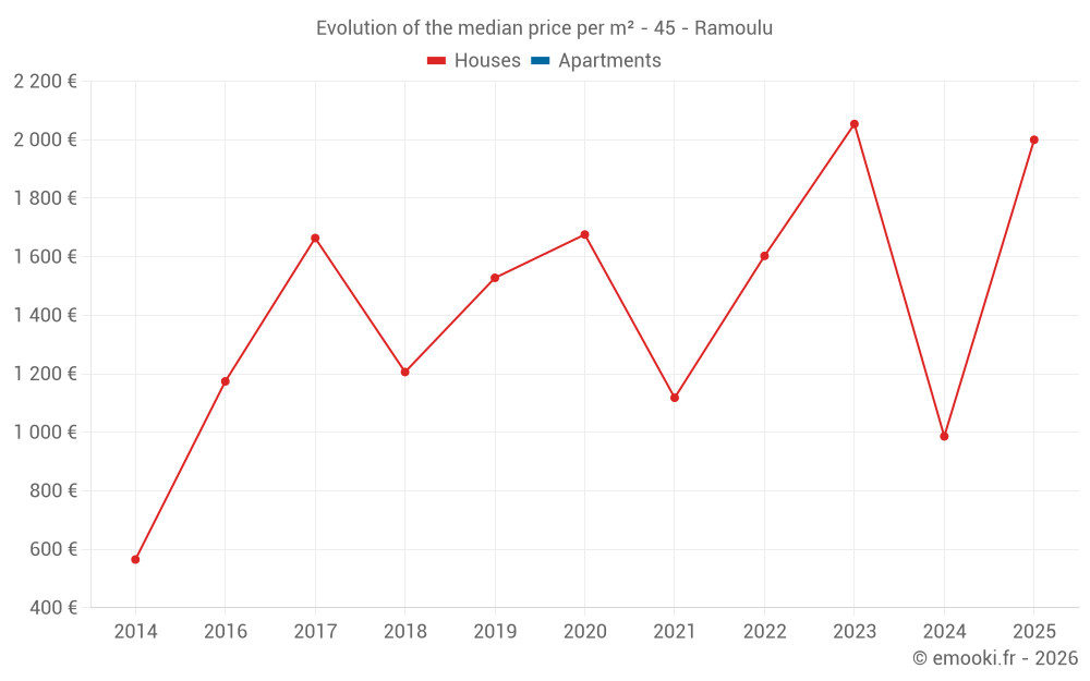 Real estate price map in the municipality of Ramoulu, choose a section to see transactions by parcel.