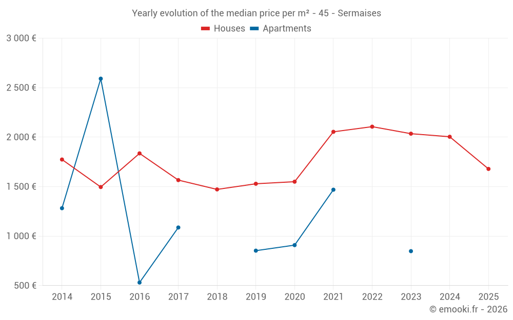 What is the price per m2 of houses in Sermaises?