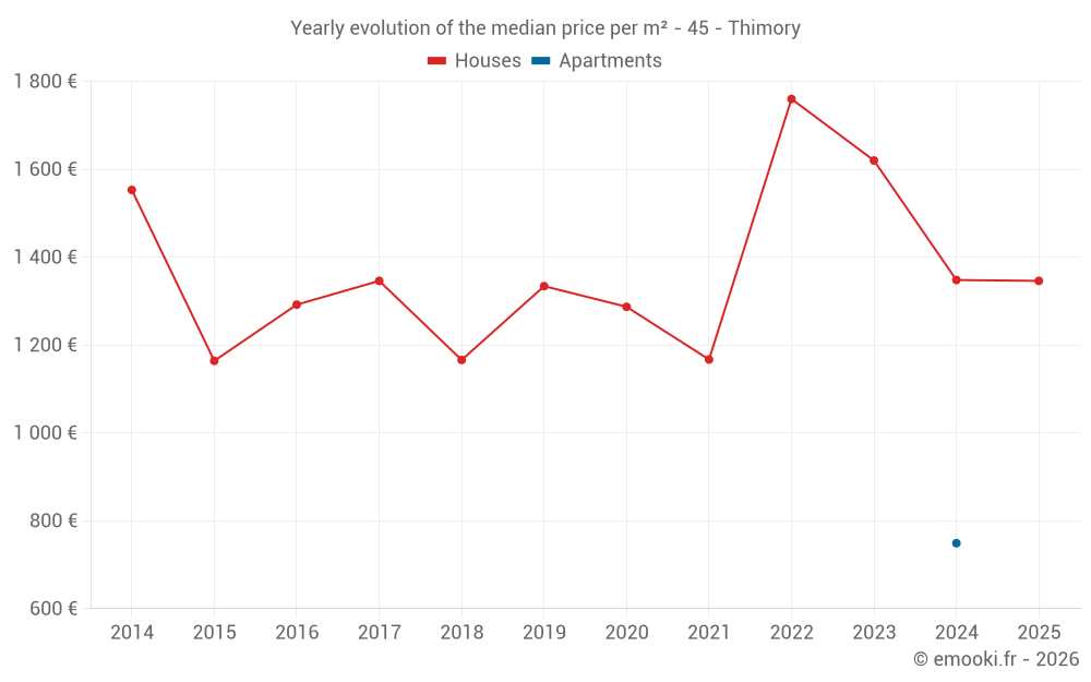 Real estate price map in the municipality of Thimory, choose a section to see transactions by parcel.