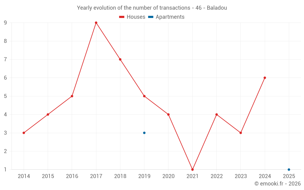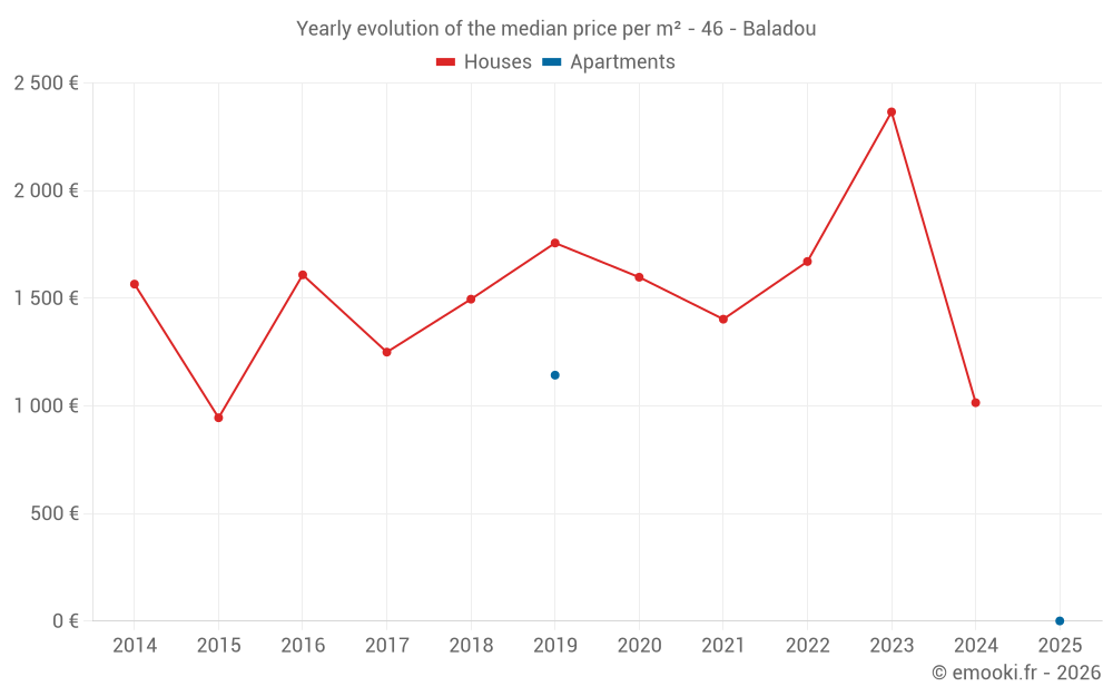 Real estate price map in the municipality of Baladou, choose a section to see transactions by parcel.