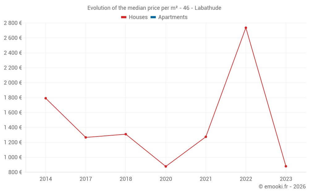 Real estate price map in the municipality of Labathude, choose a section to see transactions by parcel.