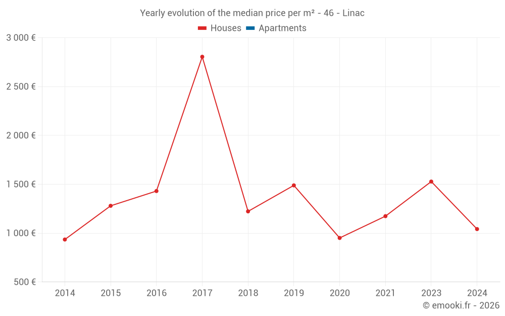 Evolution of the median price per m² of houses