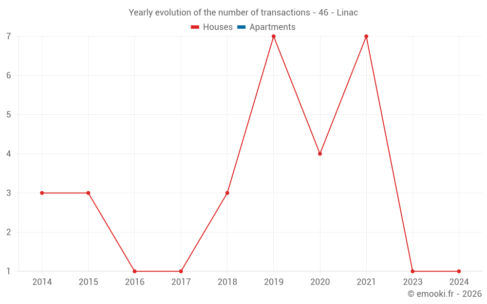 Real estate price map in the municipality of Linac, choose a section to see transactions by parcel.