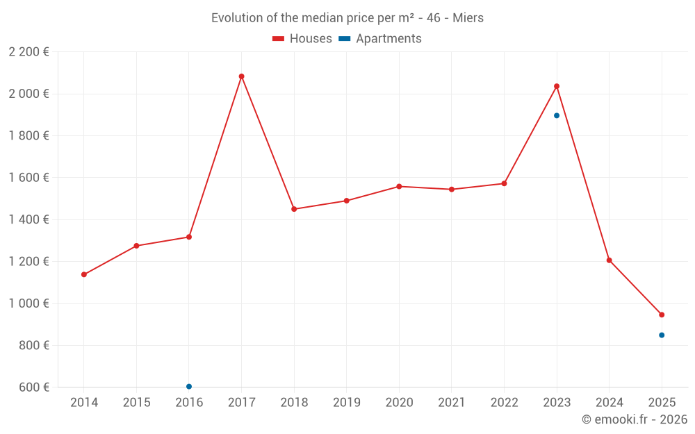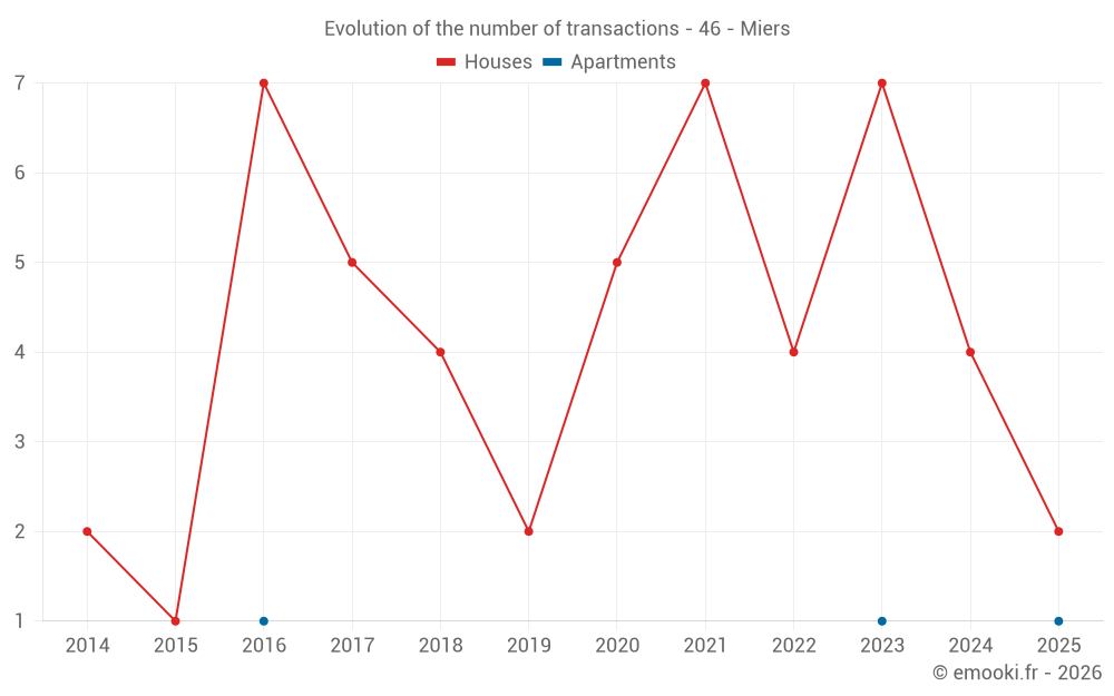 Real estate price map in the municipality of Miers, choose a section to see transactions by parcel.