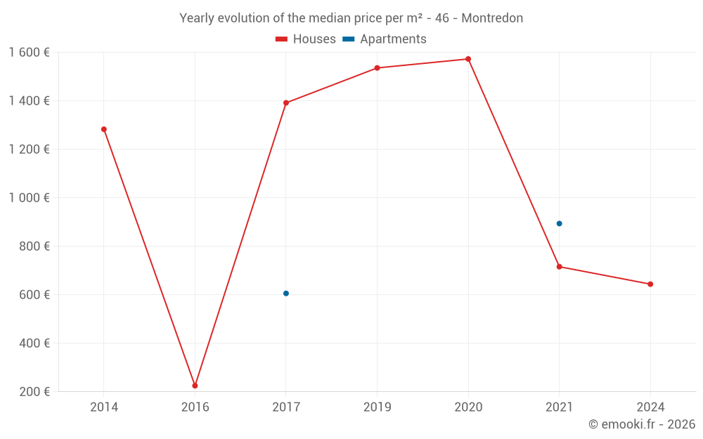 Evolution of the median price per m² of houses