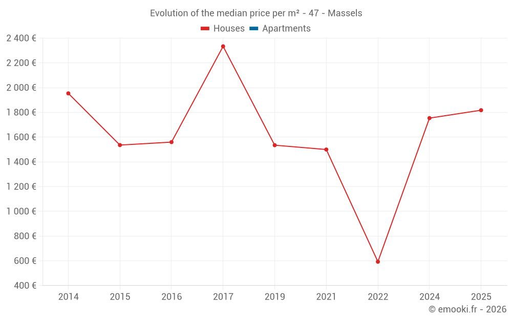 Real estate price map in the municipality of Massels, choose a section to see transactions by parcel.