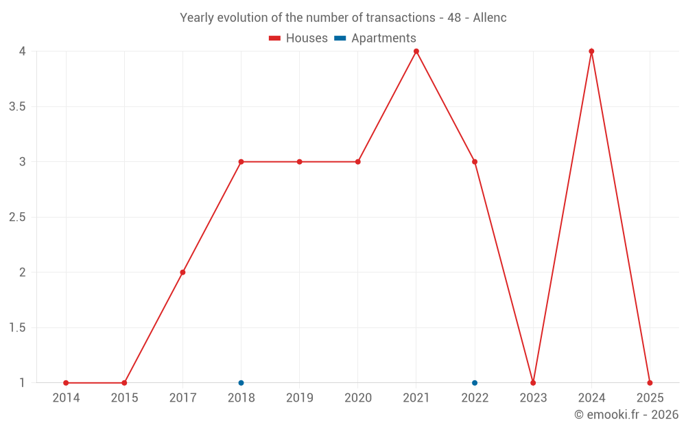 Real estate price map in the municipality of Allenc, choose a section to see transactions by parcel.