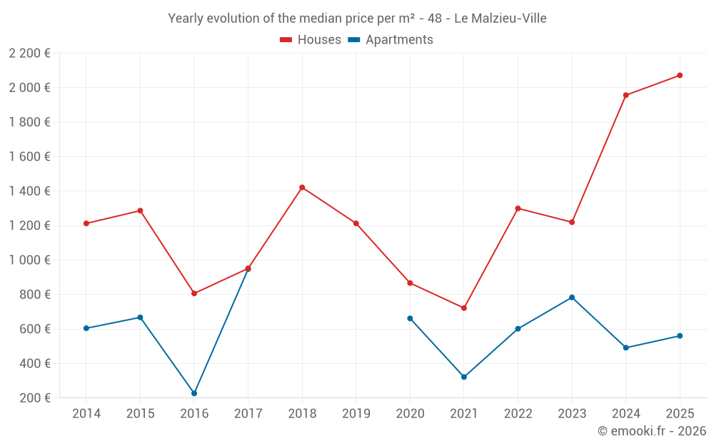 What is the price per m2 of houses in Le Malzieu-Ville?