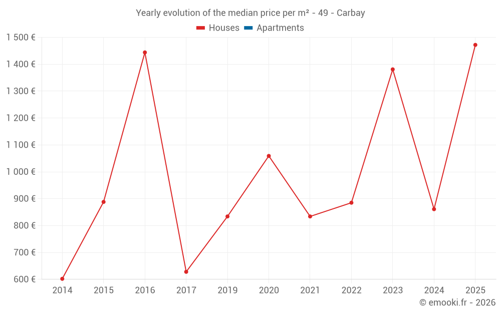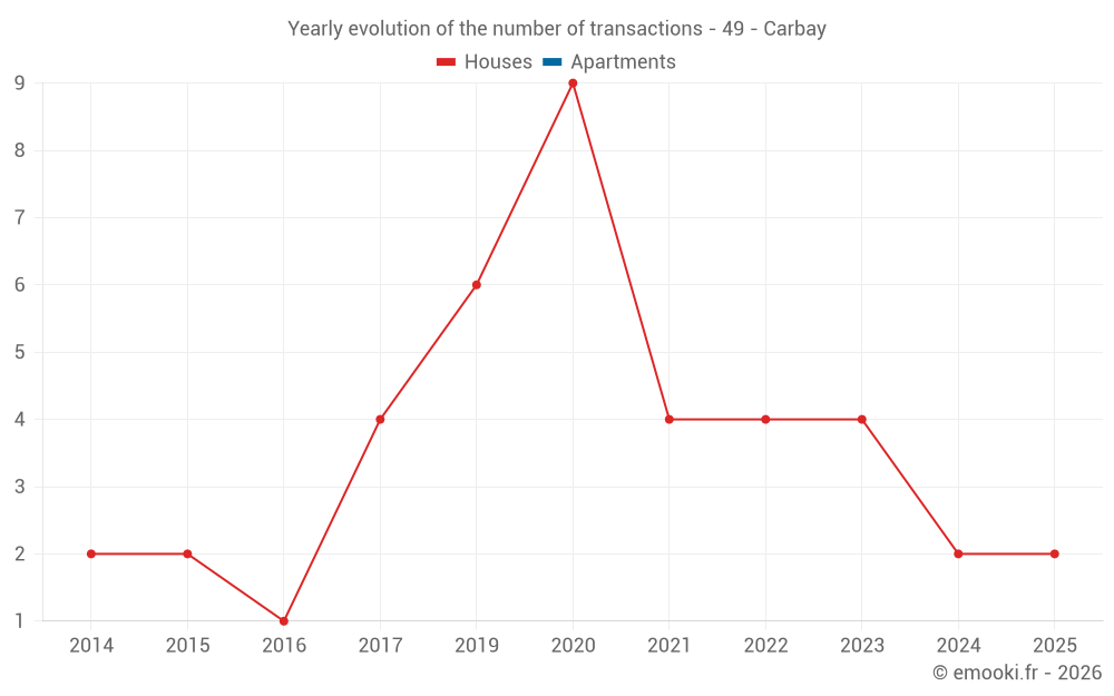 Real estate price map in the municipality of Carbay, choose a section to see transactions by parcel.