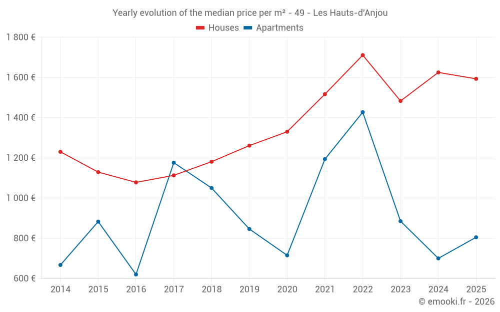 Price per m² in Les Hauts-d'Anjou
