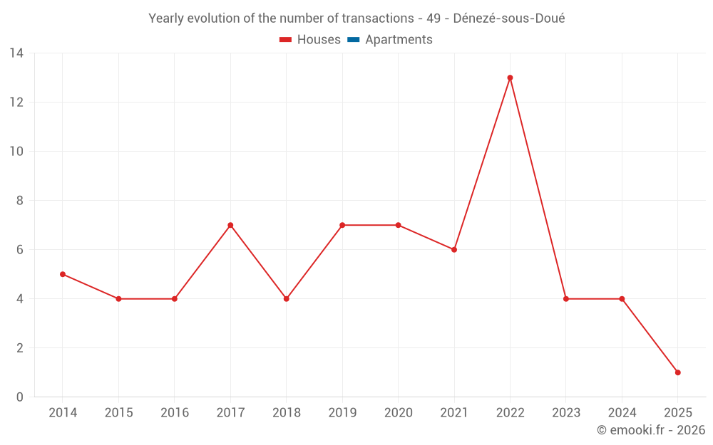 Real estate price map in the municipality of Dénezé-sous-Doué, choose a section to see transactions by parcel.