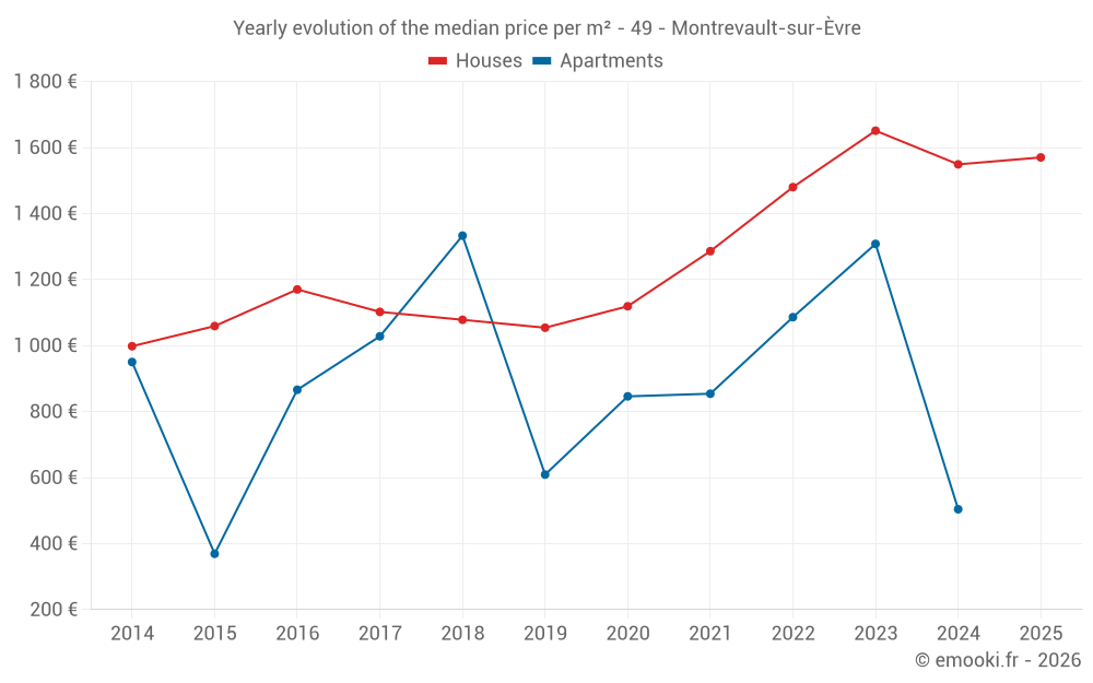 What is the price per m2 of houses in Montrevault-sur-Èvre?