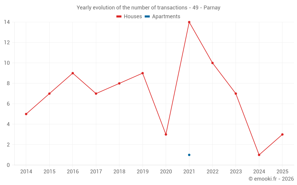 Real estate price map in the municipality of Parnay, choose a section to see transactions by parcel.