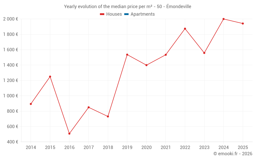 Real estate price map in the municipality of Émondeville, choose a section to see transactions by parcel.