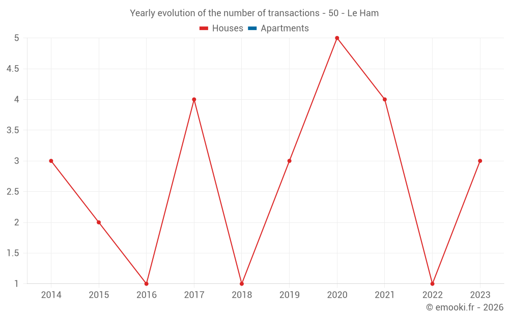 Real estate price map in the municipality of Le Ham, choose a section to see transactions by parcel.