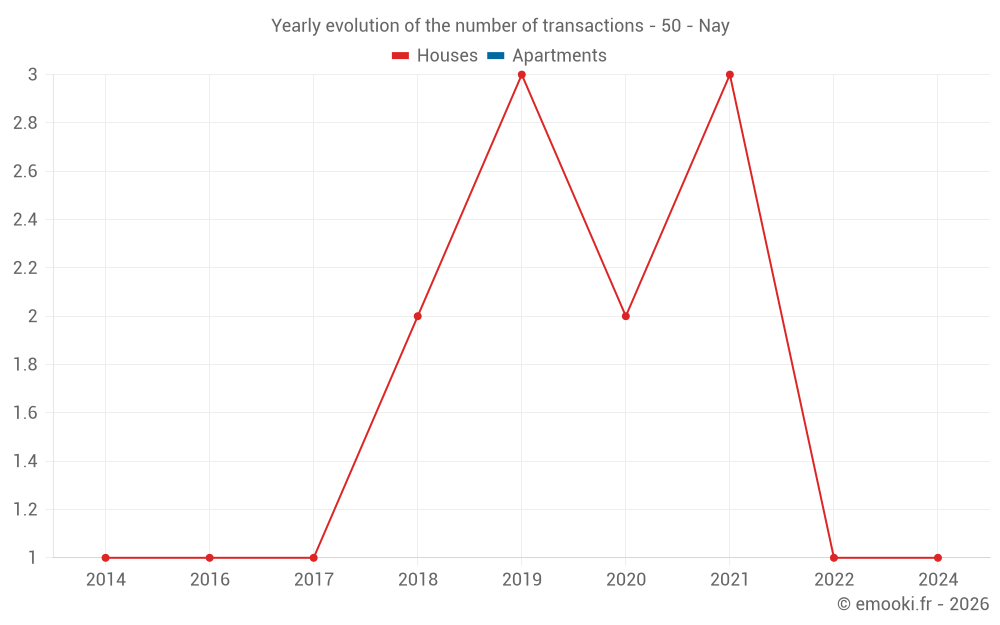 Real estate price map in the municipality of Nay, choose a section to see transactions by parcel.